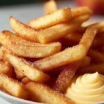 - Coat fries with cinnamon sugar: While the apple fries are still warm, toss them gently in the cinnamon sugar mixture until well coated.