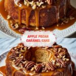 This Apple Pecan Cake with Caramel Glaze is a moist, warmly spiced dessert perfect for fall or any occasion. It combines a tender apple-studded cake enriched with crunchy pecans and topped with a luscious, buttery caramel glaze. The blend of cinnamon, nutmeg, and cloves perfectly complements the fresh apples and sweet caramel, creating a comforting and delicious treat.