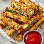 For a fun twist, arrange your zucchini fries in a cone-shaped parchment paper for a casual, handheld treat. Alternatively, pile them on a rustic wooden board with small bowls of dips and fresh herbs to create an inviting grazing platter that will impress guests.