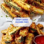 - Serve: Once baked, garnish the zucchini fries with minced fresh parsley. Serve warm, optionally accompanied by your favorite dipping sauces such as marinara or ranch dressing.