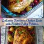 A flavorful and easy Balsamic Cranberry Chicken Bake combining tender chicken breasts marinated in a tangy balsamic and maple syrup blend, fresh cranberries, and roasted baby potatoes, baked together to create a delicious and comforting meal perfect for weeknights or special occasions.