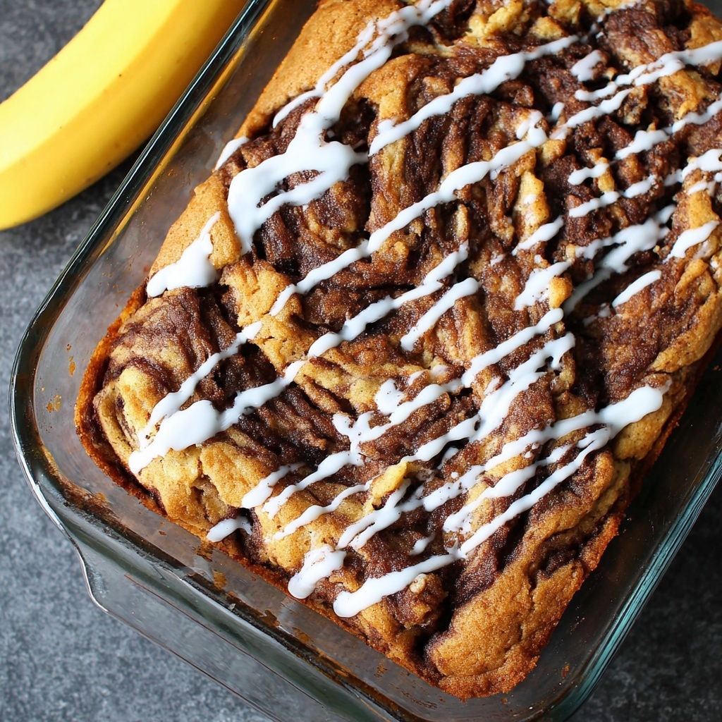 This Banana Cinnamon Roll Cake is a deliciously moist and flavorful dessert combining the warm spices of cinnamon with the sweetness of ripe bananas. With a swirled cinnamon topping and a sweet icing drizzle, this cake offers the comforting flavors of a cinnamon roll in an easy-to-make baked cake form. Perfect for brunch, dessert, or a special treat.