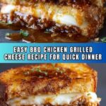 A delicious and comforting BBQ Chicken Grilled Cheese sandwich combining shredded BBQ chicken, melted cheese, and optional red onion and cilantro. Perfectly toasted with buttery bread for a quick and satisfying meal.