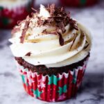 Chocolate curls are the star garnish, adding elegance and a little crunch to the smooth frosting and tender cupcake. You might also scatter mini chocolate chips or a light dusting of cocoa powder for an extra pop of chocolate goodness.