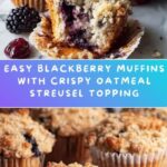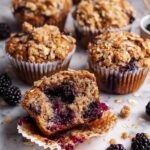 Delight in these moist and flavorful Blackberry Muffins topped with a crunchy oatmeal streusel. Perfect for breakfast or a snack, these muffins combine fresh or frozen blackberries with a tender crumb and a buttery oat topping for a satisfying treat.