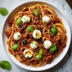 There’s something magical about combining a beloved comfort food like spaghetti with the playful twist of mozzarella eyeballs, and this Bloody Spaghetti with Mozzarella Eyeballs Recipe delivers exactly that. It’s a joy to make, fun to share, and absolutely unforgettable to eat. If you’re ready to add some spooky spirit to dinner, this recipe will not disappoint—so grab your ingredients, get creative, and enjoy every delicious, eerie bite!