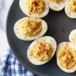 Since these deviled eggs are served cold, there’s no need for reheating. Just bring them to room temperature for about 10 minutes before serving to let the flavors come alive fully.