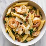 For a dinner party, serve the pasta in individual shallow bowls, garnished with basil and Parmesan for a refined touch. Consider brightening your plate with a wedge of lemon on the side to squeeze over the shrimp, adding a fresh citrus zest. You can even turn this recipe into a pasta bake by layering it with extra cheese and broiling until bubbly for a different take.