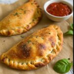 Pair your calzone with a crisp green salad tossed in vinaigrette to balance the richness inside. Roasted vegetables or a bowl of warm minestrone soup also make wonderful accompaniments, turning this into a full Italian-inspired feast.