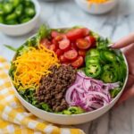 Grab your serving bowls and start with a generous bed of shredded lettuce—it’s the fresh foundation that balances the savory ingredients. Next, pile on the warm, seasoned ground beef. Then, add your favorite toppings like halved cherry tomatoes, shredded cheddar, pickled onions, sliced pickles, pickled jalapenos, and crumbled bacon. Finish everything off by drizzling the homemade burger sauce all over. Each bite offers a perfect blend of textures and bold flavors that make this Cheeseburger Bowls Recipe truly unforgettable.