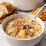 If you are craving something rich, comforting, and downright delicious, this Cheeseburger Soup Recipe is exactly what you need. Packed with hearty ground beef, tender potatoes, crisp vegetables, and ooey-gooey pepper jack Velveeta cheese, every spoonful feels like a warm hug. Whether you’re feeding a crowd or just treating yourself, this soup blends the flavors of a classic cheeseburger with the soul-soothing power of a creamy bowl of comfort food.