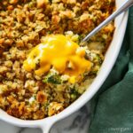 This Cheesy Stuffing Casserole Recipe freezes beautifully if you want to prepare in advance. Wrap the casserole tightly with plastic wrap and aluminum foil to prevent freezer burn, then store it in the freezer for up to 2 months. It’s a lifesaver for busy days or unexpected guests.