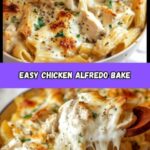 Chicken Alfredo Bake is a creamy, cheesy pasta casserole featuring tender diced chicken and penne pasta smothered in a rich homemade Alfredo sauce, topped with melted mozzarella cheese and baked to golden perfection. This comforting Italian-American dish is perfect for a hearty family dinner or gathering.