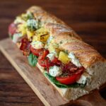 This Chopped Italian Sandwich is a vibrant and hearty Italian-style sandwich bursting with layers of flavorful salami, capicola, pepperoni, and provolone cheese. Combined with fresh chopped lettuce, tomato, red onions, and pepperoncini, all tossed in a zesty olive oil and red wine vinegar dressing, it offers a perfect balance of savory, tangy, and fresh flavors. Ready in just 15 minutes, this sandwich is ideal for a quick and satisfying lunch or casual dinner that highlights traditional Italian deli flavors.