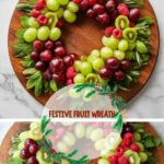 This festive Christmas Fruit Wreath is a beautiful and healthy centerpiece for your holiday table. Made with fresh mint and rosemary sprigs as a fragrant base, it is elegantly decorated with green grapes, red grapes, kiwi, and raspberries to create a colorful and refreshing edible wreath that guests will love.