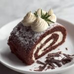 Mix cocoa powder and remaining powdered sugar if you want a dusting on top or spread extra whipped cream for texture. Finish by sprinkling chocolate shavings or sprinkles to mimic the rustic bark of a real Yule log. Chill before serving to let it set beautifully.