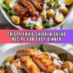 A delicious and hearty Classic Fried Chicken Salad featuring crispy breaded chicken breasts served atop a fresh mixed green salad tossed with a tangy olive oil and apple cider vinegar dressing. Perfect for a satisfying lunch or dinner, this recipe combines crunchy textures with bright flavors.