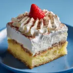 - Assemble and serve: Spread the whipped cream topping over the chilled, soaked cake. Optionally, dust with ground cinnamon or garnish with fresh berries before serving.