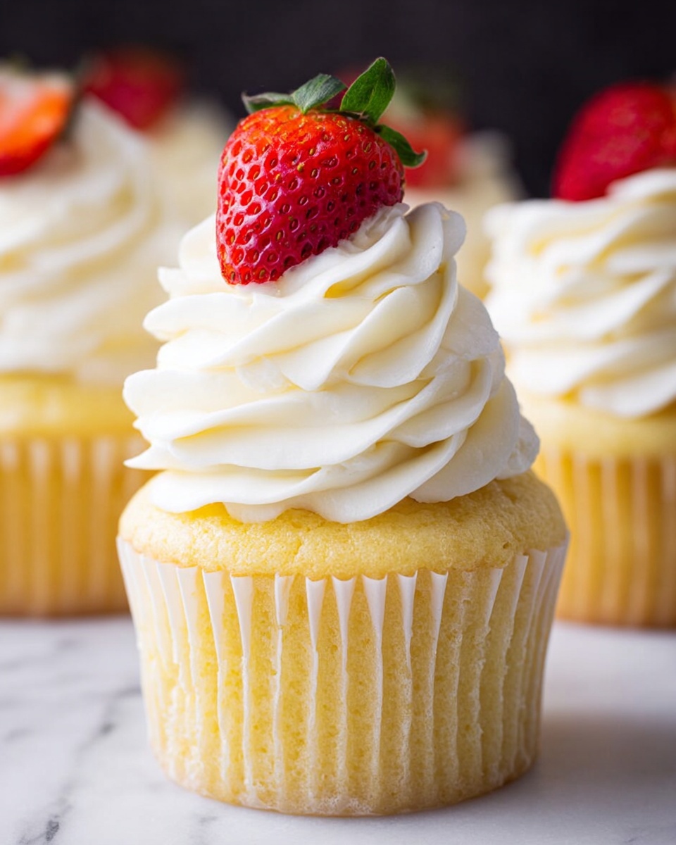 Using a piping bag fitted with a large star tip or round tip works well. Chill the frosting slightly if it gets too soft during piping to help it hold its shape better on your cupcakes.