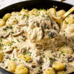 This creamy Boursin gnocchi dish combines tender potato gnocchi with a rich and flavorful sauce made from sautéed mushrooms, onions, garlic, cream, and soft Boursin cheese. Perfectly seasoned and garnished with fresh parsley, it delivers a comforting and indulgent Italian-inspired meal that can be prepared quickly on the stovetop.