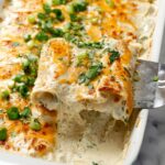 - Serve: Garnish with chopped cilantro and scallions. Serve immediately, adding extra salt and pepper if needed and enjoy your creamy chicken enchiladas!