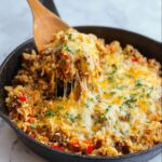 A flavorful and hearty Chicken Fajita Rice Skillet that combines tender chicken, vibrant bell peppers, and aromatic spices all cooked in one pan with creamy cheese melted on top. Perfect for a quick and satisfying weeknight dinner with a Tex-Mex flair.
