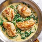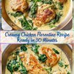 Creamy Chicken Florentine is a rich and flavorful skillet dish featuring tender chicken breasts cooked in a luscious garlic cream sauce with fresh baby spinach and parmesan cheese. Perfect for a comforting weeknight dinner, this recipe combines the delicate flavors of white wine and Italian seasoning with a creamy sauce that’s both indulgent and satisfying.