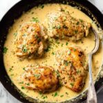 This creamy chicken pairs beautifully with a range of comforting sides. Try it with buttery mashed potatoes or creamy polenta to soak up the sauce. Alternatively, fluffy couscous or a simple wild rice pilaf adds texture contrast, while steamed green beans or roasted asparagus offer a fresh, crisp complement.