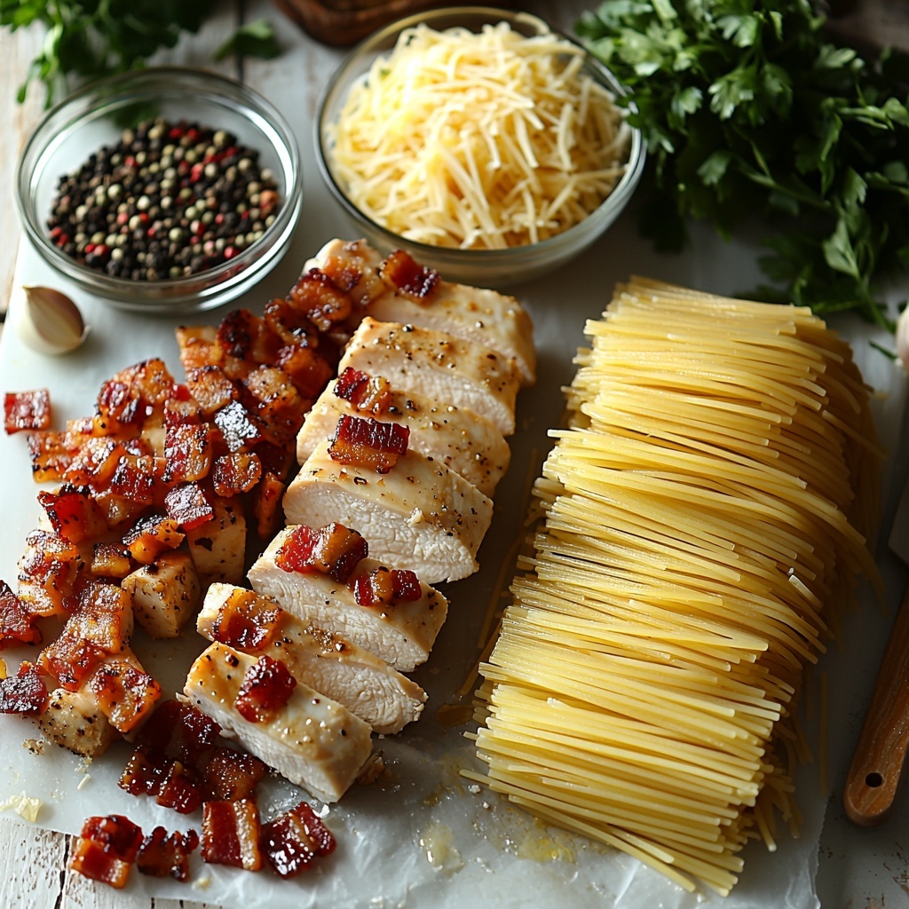 Getting ready to make this Creamy Monterey Chicken Spaghetti means rounding up a handful of straightforward ingredients that each play a starring role in flavor, texture, and color. From juicy chicken breasts to the creamy Monterey Jack, every element is essential to make this dish sparkle.