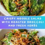 - Combine Salad: In a large mixing bowl, combine the crispy noodles, roasted broccoli, and chopped fresh herbs. Squeeze in the lemon juice and mix gently to blend the fresh and bright flavors.