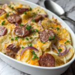 This Crockpot Pierogi Casserole with Kielbasa is a hearty, comforting dish perfect for busy days. Featuring layers of frozen potato and cheese pierogi, savory kielbasa sausage, onions, and a creamy cheese sauce, it all cooks to bubbly perfection in your slow cooker with minimal effort. Topped with fresh parsley, it’s a satisfying meal that combines Eastern European flavors with American convenience.