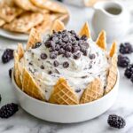 Before serving, feel free to sprinkle additional mini chocolate chips on top for an inviting look. Then, arrange your selection of dippers such as cannoli chips, strawberries, vanilla wafers, pretzels, and pizzelle cookies around the bowl, making it a feast for the eyes as well as the taste buds.