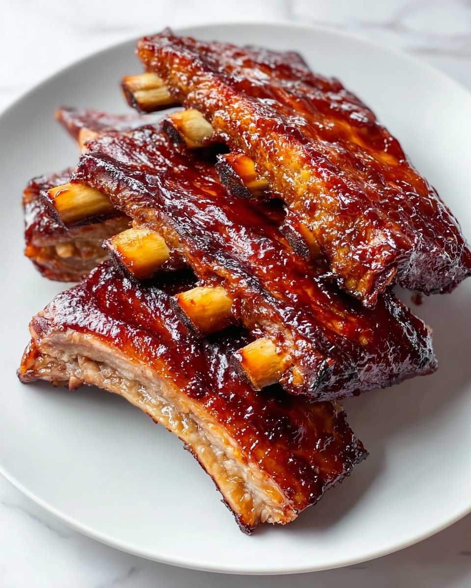- Serve: Slice the ribs between the bones and serve hot with extra BBQ sauce on the side for dipping.