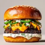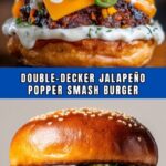 This Double-Decker Jalapeño Popper Smash Burger with Ranch Drizzle is a decadent and spicy twist on a classic smash burger. Featuring two layers of crispy, juicy beef patties with a creamy jalapeño cream cheese and cheddar filling, topped with crispy bacon, and drizzled with cool ranch dressing, all sandwiched in a toasted brioche bun. Perfect for those who love a flavorful burger with a spicy kick and creamy texture.