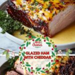 This Easter Ham and Cheddar recipe features a tender bone-in ham roasted to perfection with a flavorful Dijon mustard and black pepper rub, glazed with a sweet and tangy brown sugar, honey, and apple cider vinegar mixture infused with fresh thyme. Finished with a rich sharp cheddar cheese sauce, this dish is perfect for holiday celebrations and family gatherings.