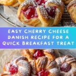 This Easy Cherry Cheese Danish recipe features flaky puff pastry filled with a smooth cream cheese mixture and sweet cherry pie filling. Baked to golden perfection and dusted with powdered sugar, these delightful pastries are perfect for breakfast, brunch, or dessert.