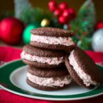 These Easy Chocolate Peppermint Whoopie Pies combine the rich, fudgy flavor of devil’s food cake with a creamy, minty filling to create a festive and delicious treat perfect for the holiday season. Soft, chocolatey cake rounds sandwich a fluffy peppermint cream, enhanced with the crunch of crushed candy canes for an irresistible texture contrast.