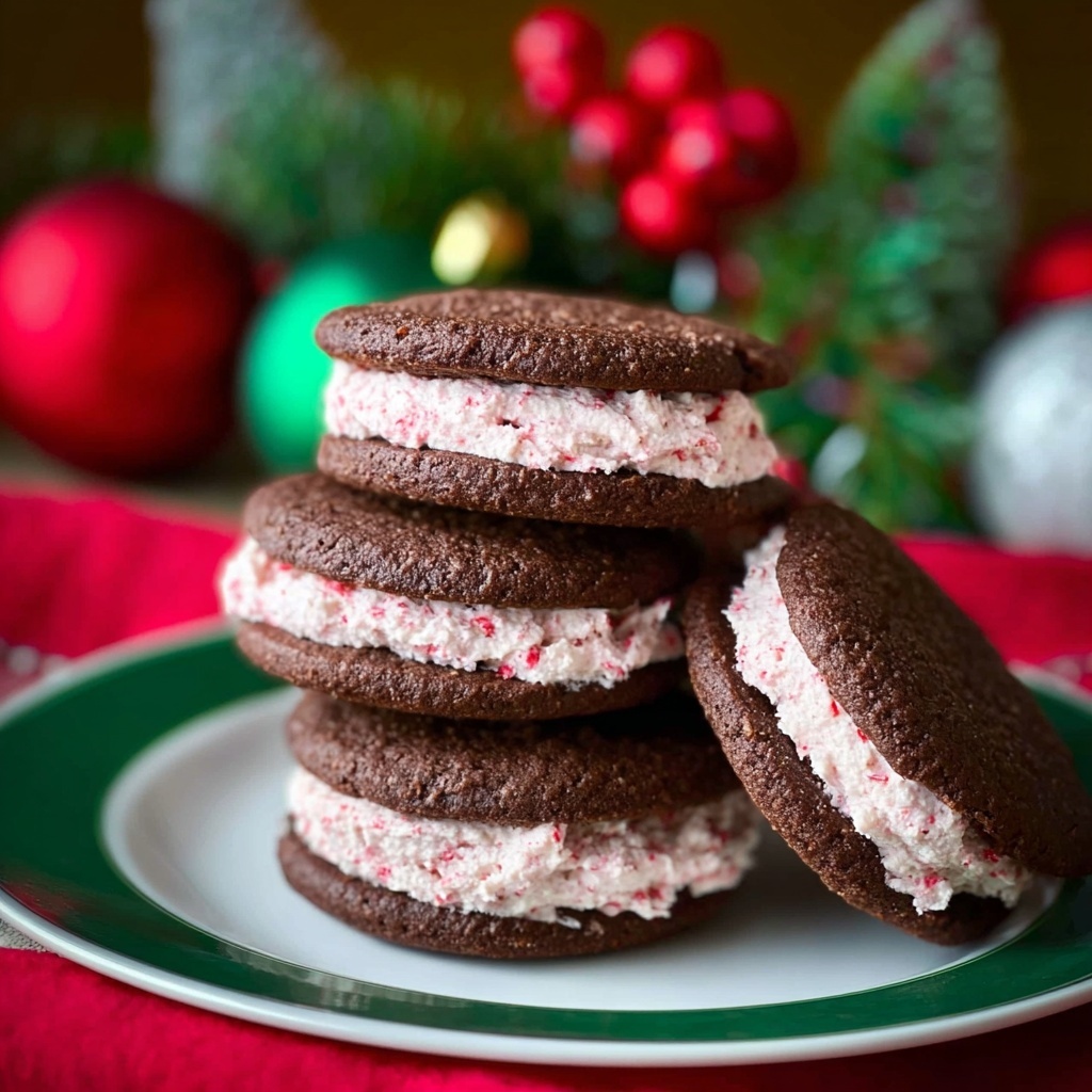 - Assemble Whoopie Pies: Spread a generous amount of peppermint filling onto the flat side of one cake round. Top with another cake round to form a sandwich.