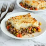 Yes! Swap out the ground beef for plant-based crumbles or lentils and use vegetable broth instead of beef broth. Add extra veggies like mushrooms or zucchini for a hearty veggie version of this Easy Shepherd’s Pie Recipe.