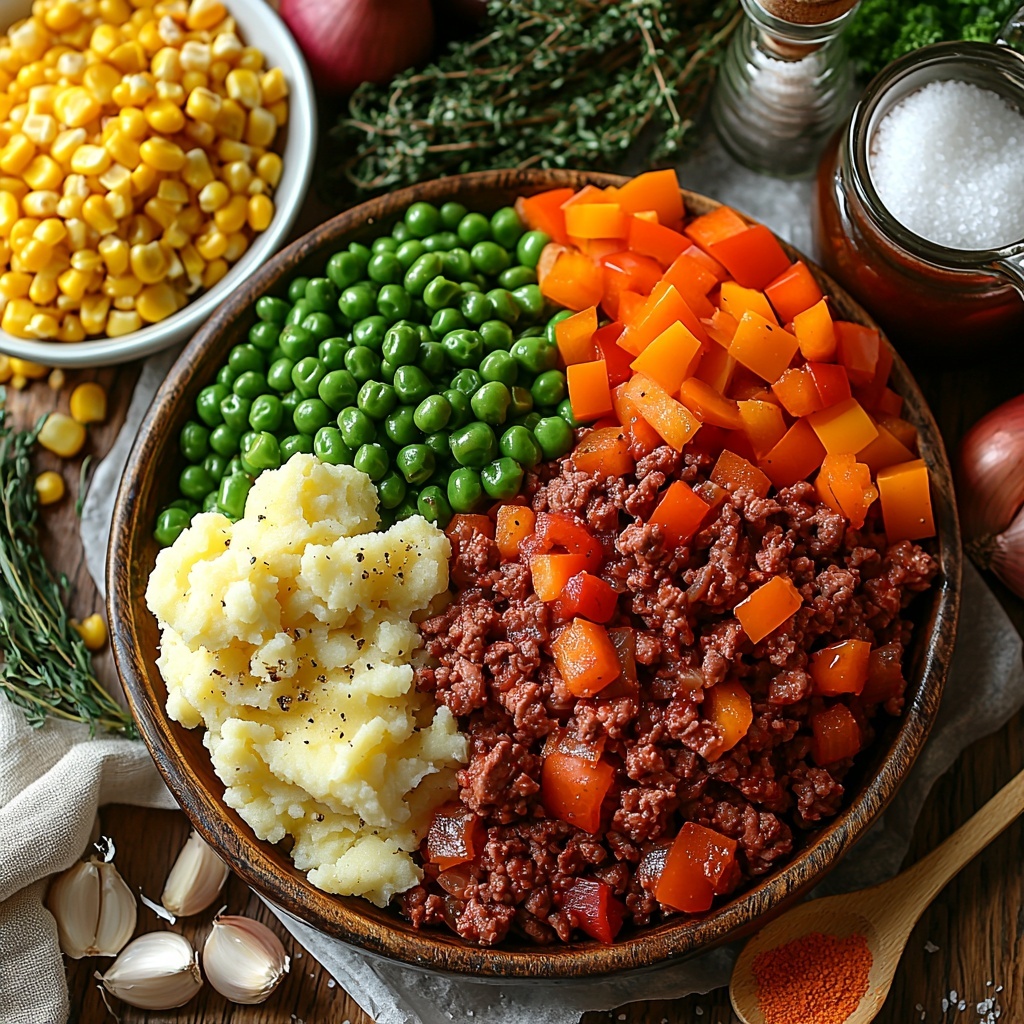 Gathering the right ingredients for this Easy Shepherd’s Pie Recipe is simple, yet each one plays a crucial role in building the perfect balance of flavor, texture, and color. These ingredients work together to create that beloved harmony of meaty richness, tender veggies, and creamy potato topping.