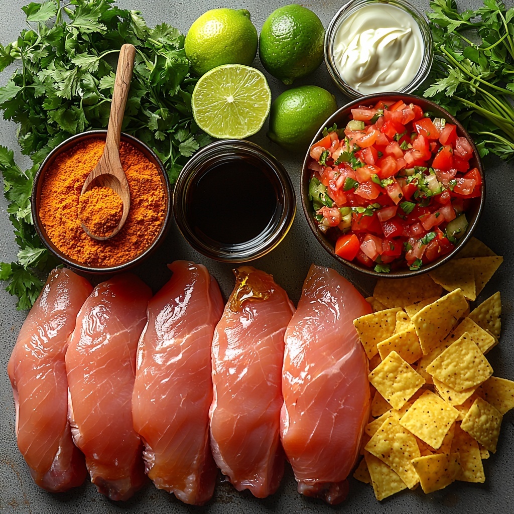 This Fiesta Lime Chicken recipe is a vibrant Applebee’s copycat featuring juicy, marinated chicken breasts baked to perfection and topped with melted Colby Jack cheese and a zesty salsa-ranch sauce. Served over crunchy tortilla chips and garnished with fresh cilantro and pico de gallo, it’s a festive and flavorful dish perfect for a family dinner or casual get-together.