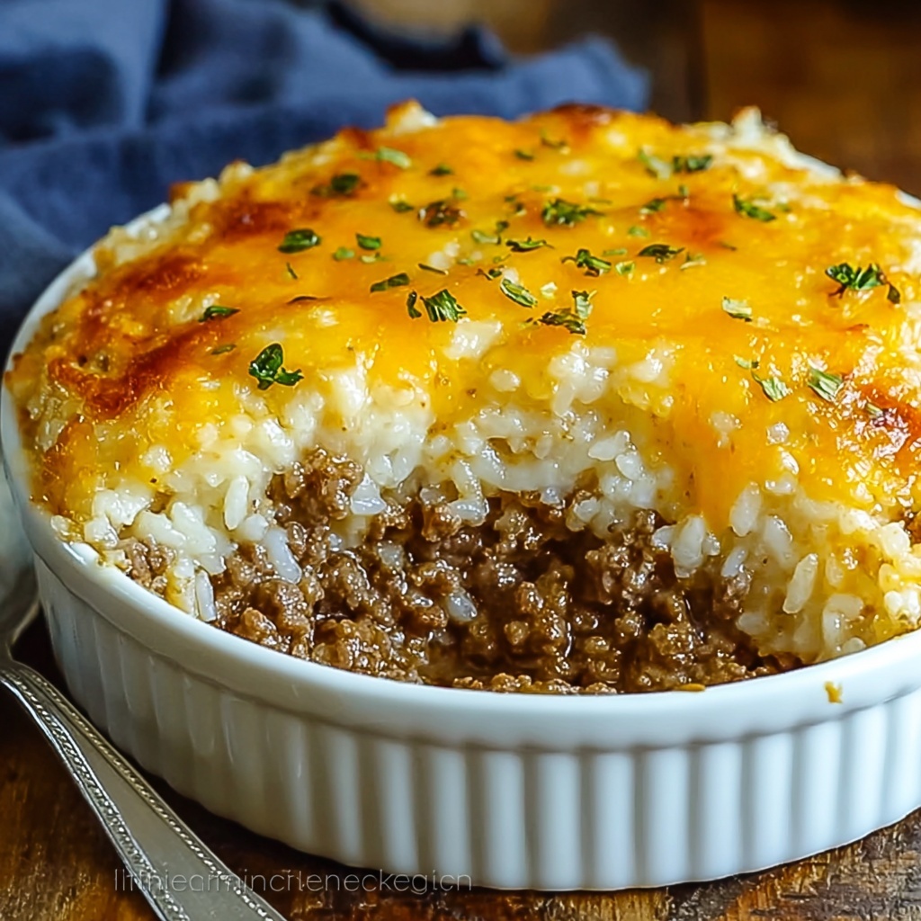 This Indulgent French Onion Ground Beef and Rice Casserole is a comforting and hearty dish perfect for family dinners. It combines savory browned ground beef simmered with onion and garlic powders, creamy French onion soup, and tangy sour cream, layered with fluffy white rice and topped with melted mozzarella cheese for a luscious finish. Easy to prepare and baked to bubbly perfection, this casserole delivers rich, satisfying flavors with minimal effort.