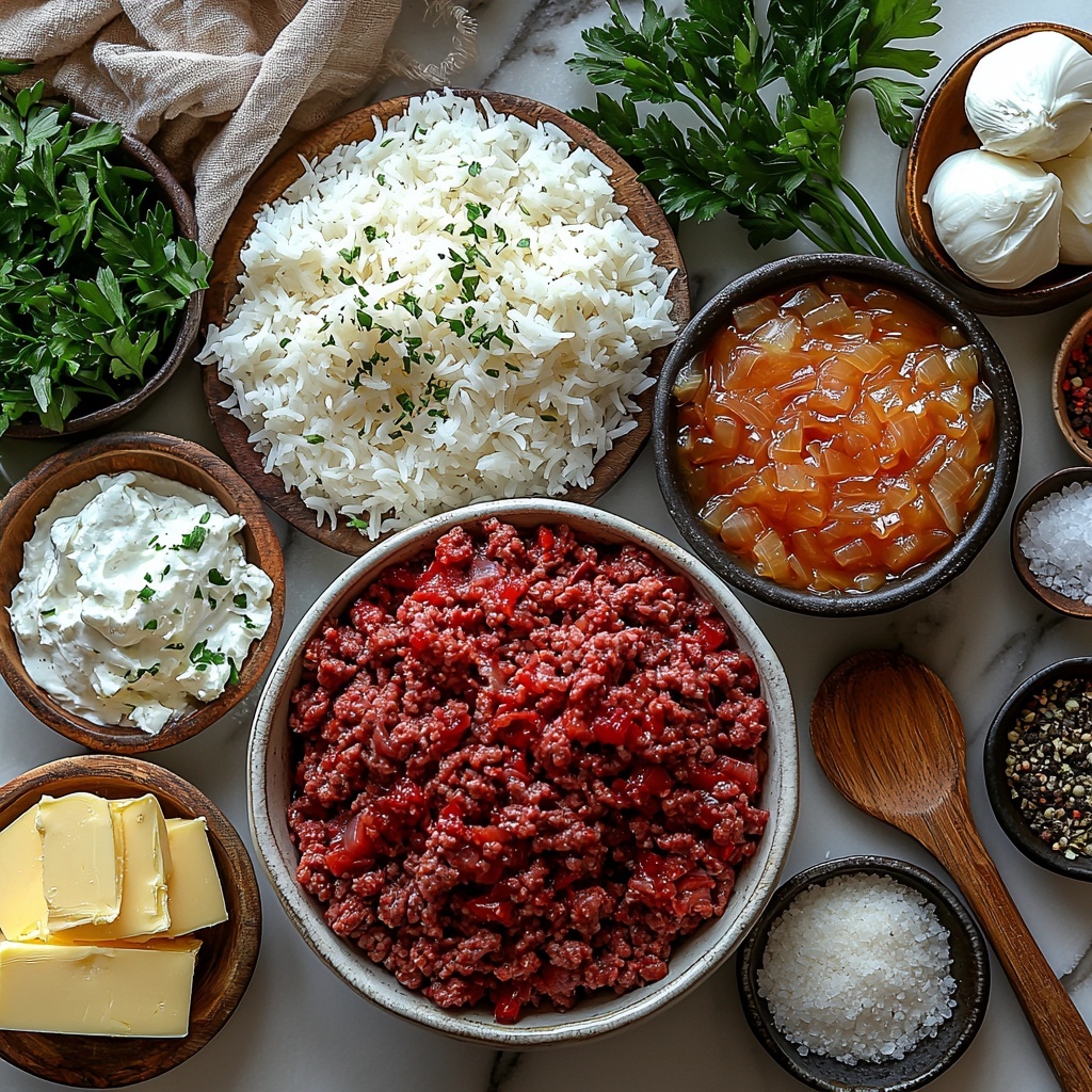 What makes this French Onion Ground Beef and Rice Casserole Recipe truly special is how straightforward the ingredients are, yet how thoughtfully each one contributes to the final dish. From savory seasonings that build depth to creamy sour cream and melty cheese that create indulgent layers, every ingredient plays a starring role in the harmony of flavors and textures.