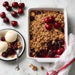 Start by preheating your oven to 350°F if baking, or get your grill heating to medium if grilling. Grease an 8×8″ baking dish or a cast iron skillet for the grill method—this ensures the crisp won’t stick and will come out perfectly. Then, pit your fresh cherries and toss them in a large bowl with 4-6 tablespoons of granulated sugar, the lemon juice, and corn starch. This mixture not only sweetens the cherries but also thickens their juicy juices as they cook.