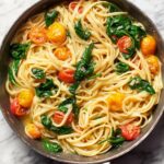 A quick and flavorful Fresh Spinach and Tomato Pasta that combines al dente linguine with a vibrant garlic-tomato sauce, fresh baby spinach, and creamy parmesan cheese. This easy stovetop recipe comes together in just 30 minutes, making it perfect for a nutritious weeknight dinner.