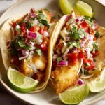 To elevate your Fried Fish Tacos with Red Onion-Tomato Salsa Recipe, consider simple garnishes that add freshness and personality. Crisp shredded cabbage provides an appealing crunch alongside the tender fish. A dollop of sour cream or crema adds luscious creaminess that balances the tangy salsa perfectly. And never underestimate the power of a lime wedge—its bright citrus juice ties everything together with an invigorating punch.
