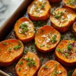 This Garlic Butter Roasted Sweet Potatoes recipe features tender, golden sweet potato cubes roasted to perfection in a savory blend of melted butter, olive oil, garlic, paprika, and thyme. It’s a simple yet flavorful side dish perfect for any meal, offering a delightful combination of sweet and savory with a crispy edge.