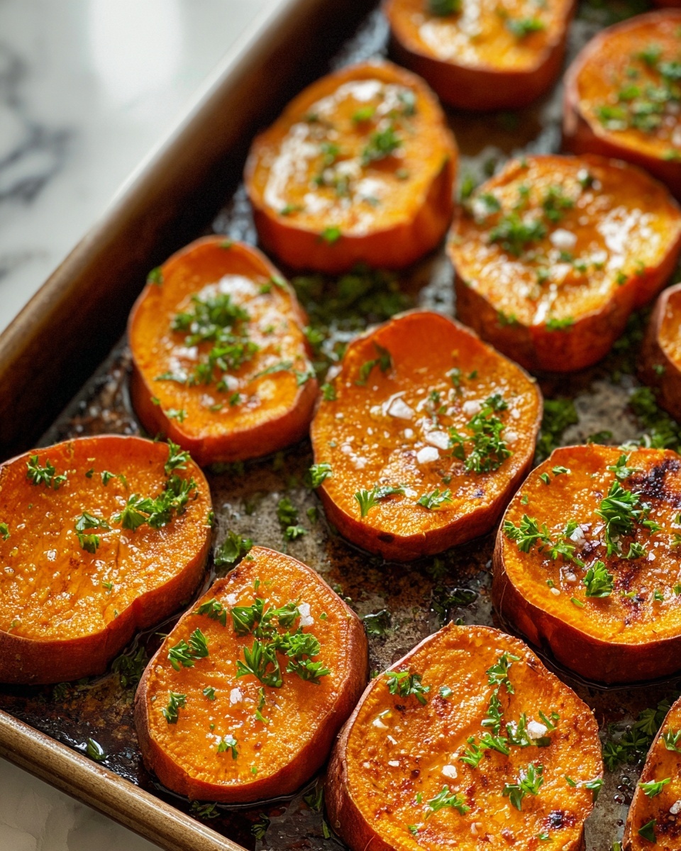 Garlic Butter Roasted Sweet Potatoes Recipe