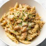 - Combine and Serve: Drain the pasta and add it directly to the skillet with the salmon and sauce. Toss to coat evenly, adding a bit of pasta water if needed to loosen the sauce. Serve immediately, garnished with fresh parsley, red pepper flakes, and parmesan cheese if desired.