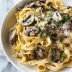 A creamy and flavorful Garlic Mushroom Pasta featuring tender fettuccine tossed in a savory garlic-infused mushroom sauce with Parmesan and fresh parsley. Perfect for a comforting and quick weeknight dinner.